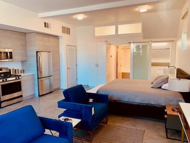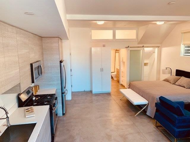 Contemporary Culver City Studio; Polished concrete floors with high ceilings; Washer dryer in unit; Private 1 car garage with EV charger; Patio with BBQ hookup; Ample closets and storage; Pet friendly!