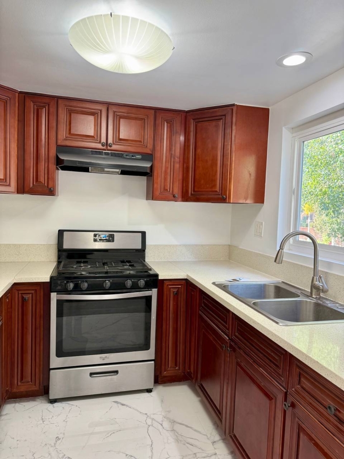 Полностю отремонтивованная квартира. Новый ламинат, кафель, кухня, туалеты и раковины. Свежая покраска Отопление/охлаждение. ХОЛОДИЛЬНИК. Сушилка-стиралка в здании. Посудомойка, плита. Чистое здание 1 паркинг с кладовкой. 5 минут пешком до RD White Elementary School, Vons, TJ Maxx, Bank of America, Wells Fargo, Whole Foods