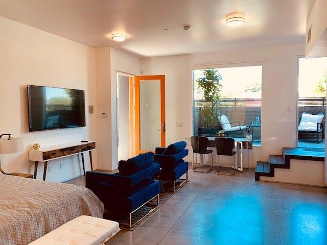 Contemporary Culver City Studio; Polished concrete floors with high ceilings; Washer dryer in unit; Private 1 car garage with EV charger; Patio with BBQ hookup; Ample closets and storage; Pet friendly!